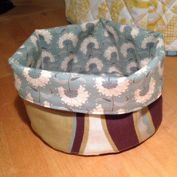 Sy en fin stickning nära kanten med lite längre stygnlängd då öppningen också sys ihop. Färdig! Vik ner kanten så mycket du önskar och du kan känna dig stolt över att ha sytt en fin och praktisk förvaringskorg!