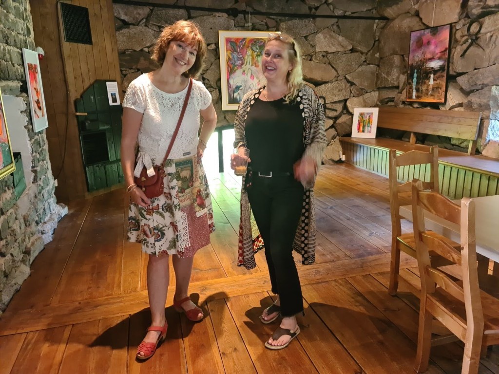 Nu har utställningen pågått i 3 veckor och halva tiden har gått, den härliga vernissagen var den 3 juli och avslutningen är den 15 augusti! Jag och Magnus (min man konstnären Magnus Säker) har varit där varje så gott som varje helg och även mitt i veckan då och då, det är så roligt att träffa alla konstintresserade besökare! Och det kommer många på utflykt till vackra Rånäs för att fika och titta på all fin konst, 20 konstnärer i olika stilar och material.