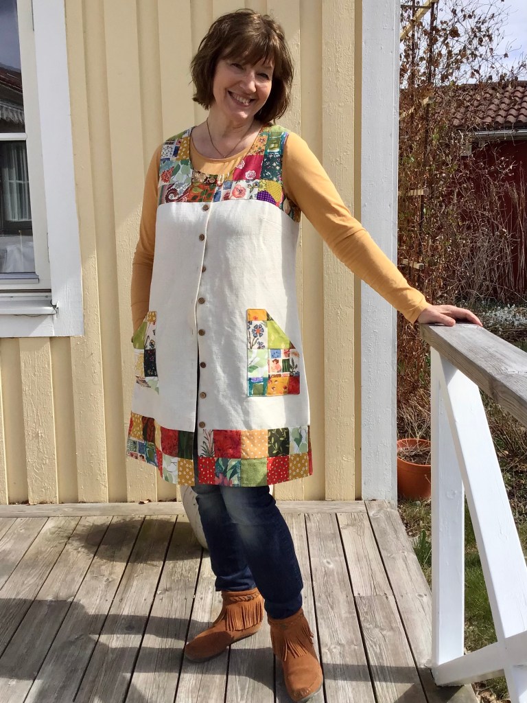 Kläder i patchwork- (lapptäcks-)teknik är stort just nu, och det är ju det perfekta projektet att sy av spillbitar, återbruk och secondhandtextilier! Och oerhört roligt att göra! Jag har sytt ett antal tunikor och västklänning/förklädesklänningar i patchwork till mig själv på sistone, men det skulle vara roligt att sy upp en kollektion för försäljning också. Håll utkik men meddela mig gärna om intresse finns också!