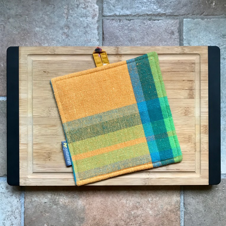 This potholder is created in a climate-friendly way from preloved textiles and is only available in one unique copy. The dimensions are 22 x 22 cm (8,7 x 8,7″).