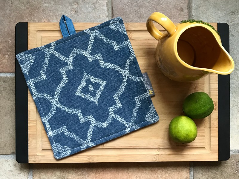 The height of the bag is 33 cm (13″), the width is 43 cm (15″) and the depth at the bottom is 8 cm 8 (ca 3″). The handles are 67 cm (29″) long.