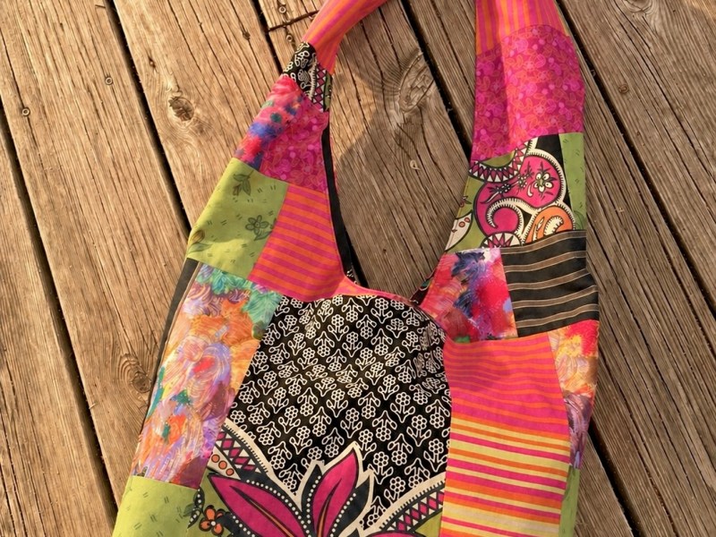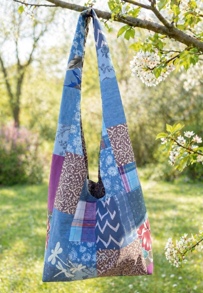 There are a pair of patchwork pants sewn from the same fabrics as the bag if you feel like matching.
