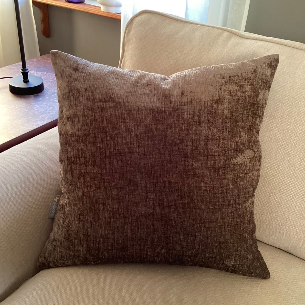 The back is the solid bark brown, slightly shimmering velvet.