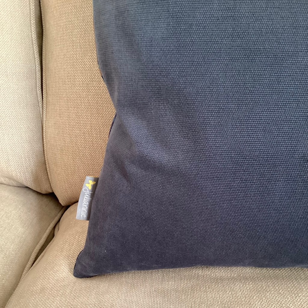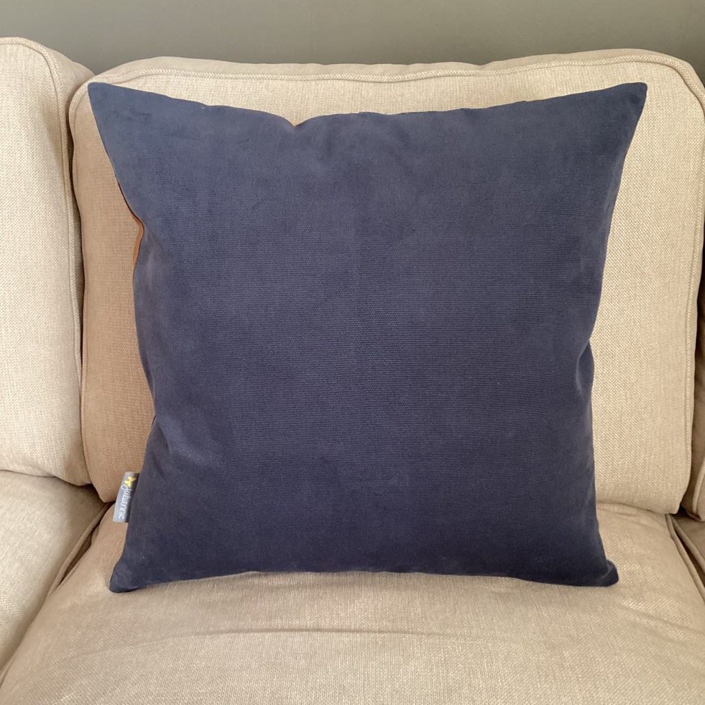 Baksidan är en enfärgad denimblå borstad bomullskanvas.