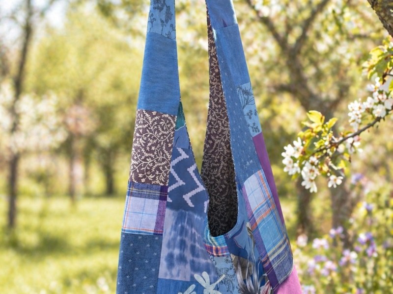 There is a hobo bag sewn from the same fabrics as the pants. A fun match for a wonderfully bohemian summer outfit!