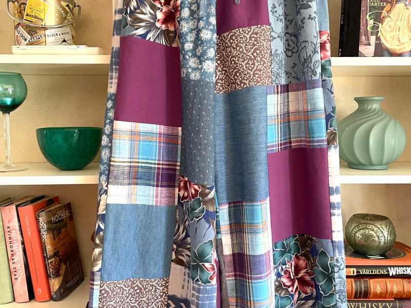 Precis som alla By Juliannies produkter är den här väskan också sydd på ett klimatvänligt sätt av återbrukstextilier och spillbitar och det finns bara ett unikt exemplar.
