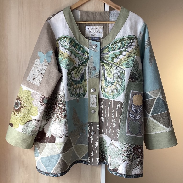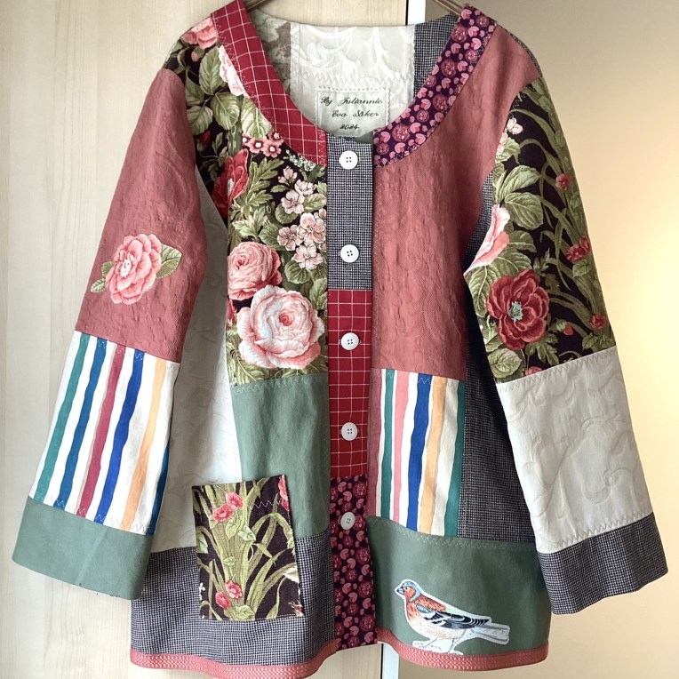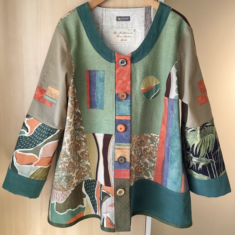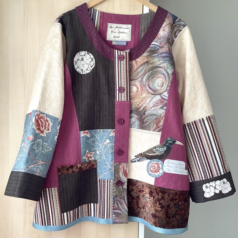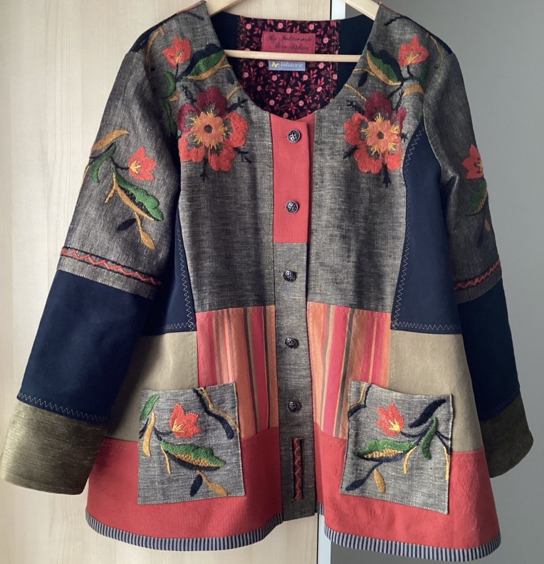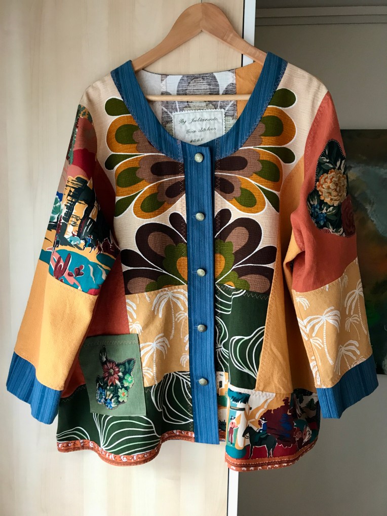 By Juliannies unika patchworkjackor är skapade som ”wearable art” i vackra färgkombinationer, genomgående i återbrukade textilier, ofta med speciella detaljer som broderier och applikationer.